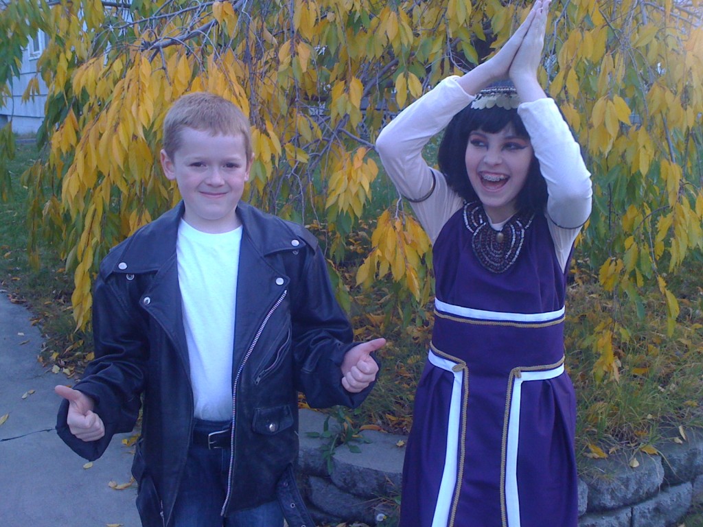 50’s guy was inspired from Happy Days. Borrowed leather jacket & purchased jeans & t-shirt.